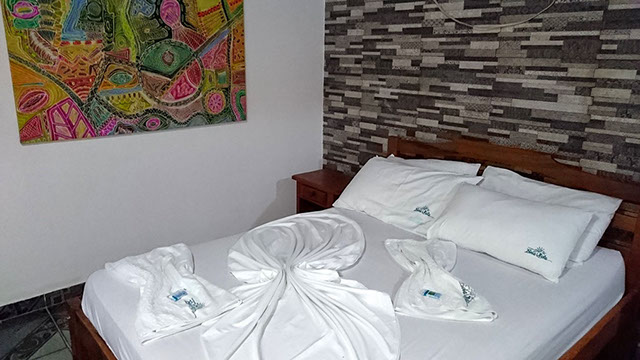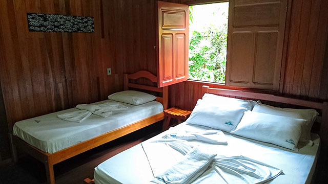 Todos nossas suítes de madeira ou alvenaria possuem banheiro privativo com chuveiro quente, ar condicionado, wifi, TV-LED e um frigobar. A diária inclui um delicioso café-da-manhã que é servido em nosso restaurante/bar com nossa vista maravilhosa do Rio Negro.