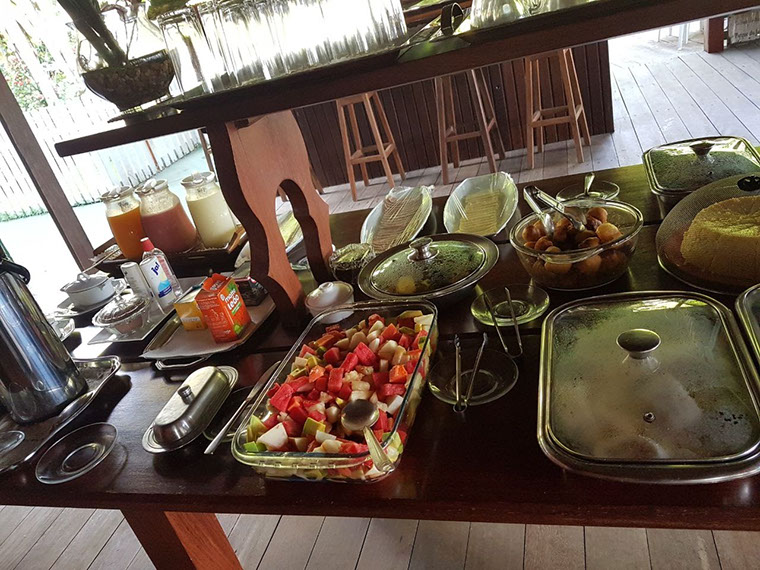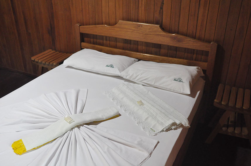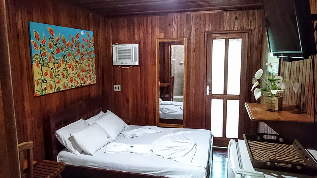 Todos nossas suítes de madeira ou alvenaria possuem banheiro privativo com chuveiro quente, ar condicionado, wifi, TV-LED e um frigobar. A diária inclui um delicioso café-da-manhã que é servido em nosso restaurante/bar com nossa vista maravilhosa do Rio Negro.
